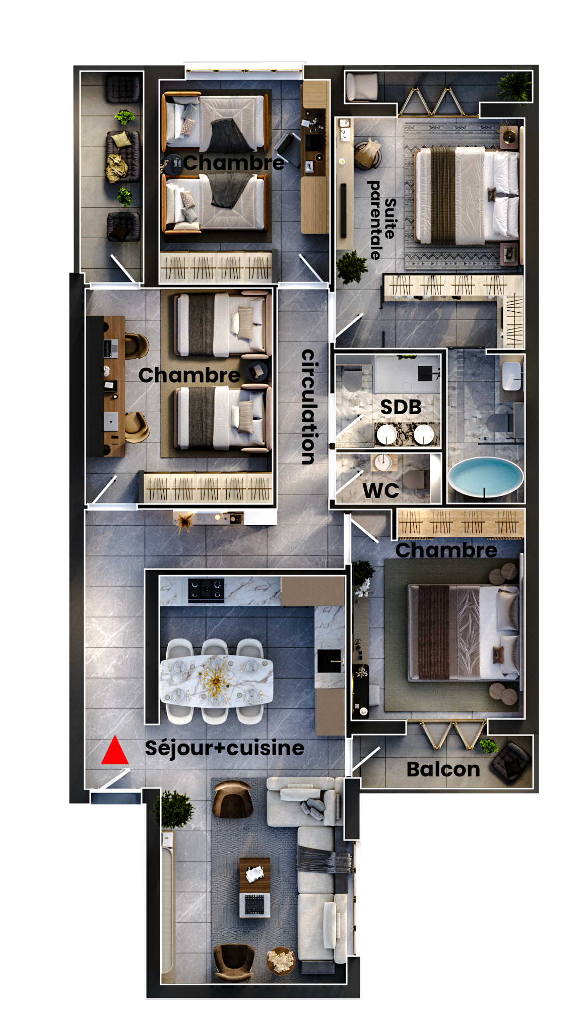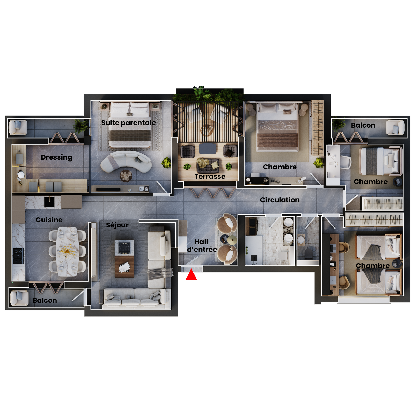 Chaque appartement bénéficie d’une organisation intérieure optimisée, alliant luminosité, fonctionna-lité et intimité. Du F3 pratique et convivial au F7 spacieux et majestueux,